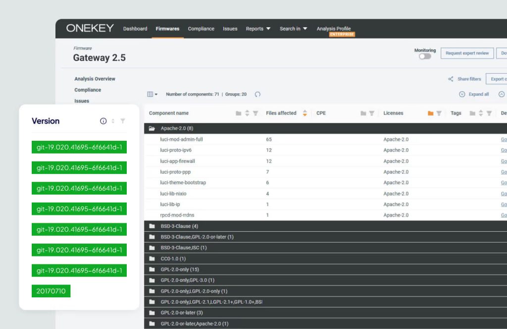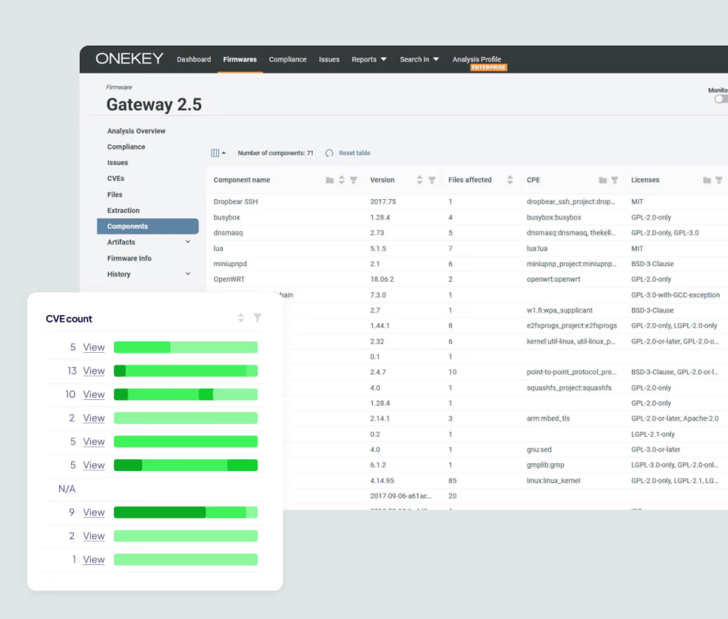 ONEKEY已成为我们应用安全与合规管理的核心工具。通过持续自动化安全评估,它不仅提升了客户项目的透明度,更确保符合欧盟CRA法规要求。其实时洞察让我们能为客户提供清晰可执行的产品安全建议。"