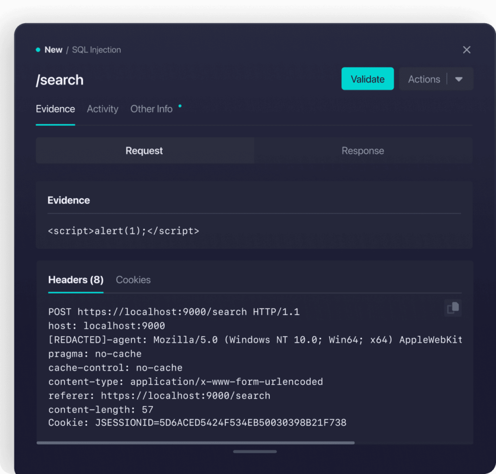 每次代码提交时自动检测新增漏洞。StackHawk的CI/CD自动化测试确保您不会将API漏洞带入生产环境,并在开发团队编写代码的上下文中实时预警新问题: