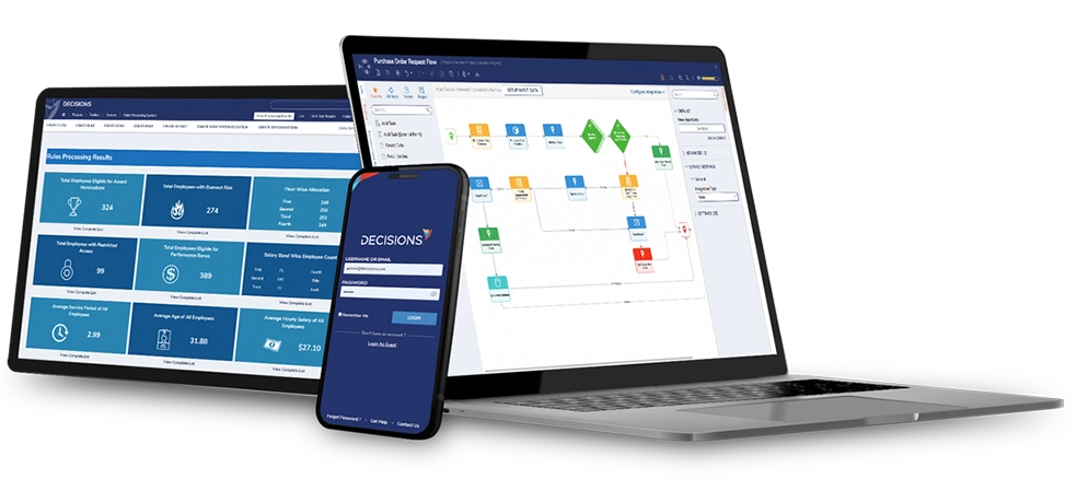 Decisions 有别于传统流程自动化工具。多数工具将规则视为独立模块或需大量编码的组件,而 Decisions 则将规则管理置于核心地位,使其成为每一项操作的驱动引擎。