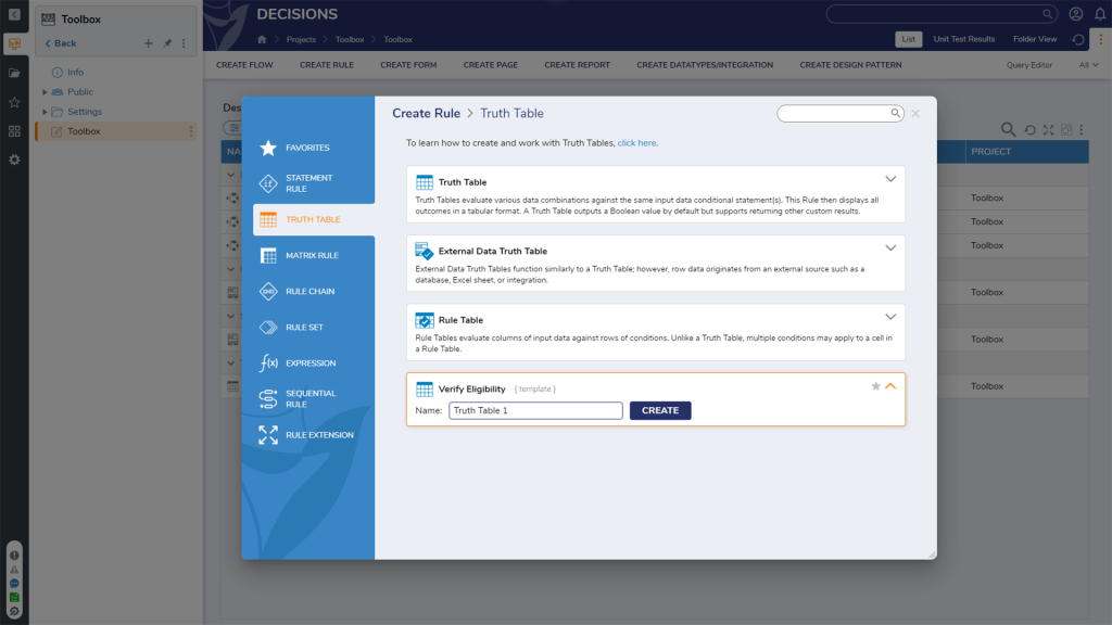Decisions 提供广泛的规则类型,让您按照组织实际的思维方式(而非工具的限定方式)来构建业务逻辑。无论您是制定管辖政策规则、评估风险,还是编排多步骤流程,都有为您用例量身打造的规则结构。大多数平台仅支持基本的 IF/THEN 或决策树,Decisions 远不止于此,提供八种带有图形编辑器的规则类型: