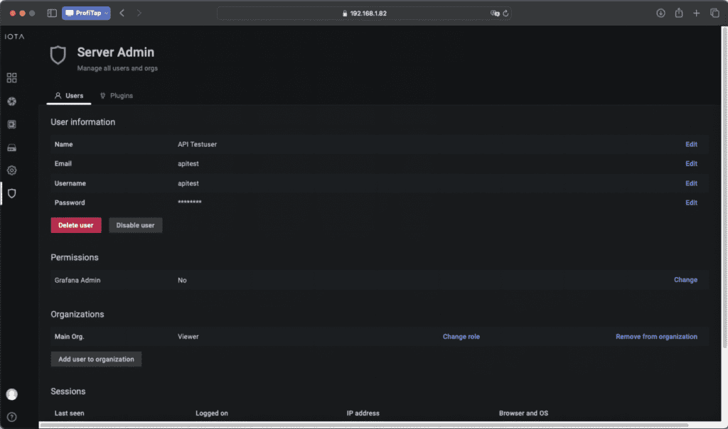 为确保敏感信息不被传播,以及设备上的任何信息都不会被用户篡改,建议创建一个新的特殊用户。在本例中,创建了一个用户名为 “apitest ”的用户。请注意,该用户已作为 “查看器 ”自动添加到组织中。不需要配置任何其他功能,而且该角色只允许只读访问,可以防止任何误传。