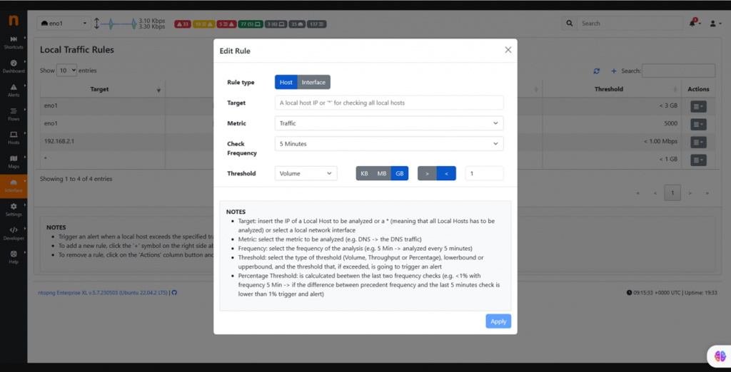 这就是我们创建本地流量规则页面的原因,用户现在可以为一些(或所有)本地主机定义自定义卷/吞吐量阈值。(您还可以设置分数和应用协议的阈值)。