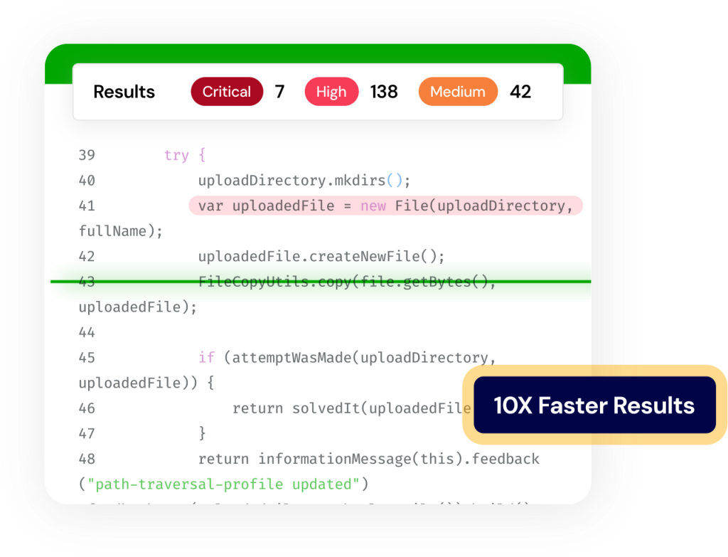 相比传统 SAST 工具快 10 倍,实现真正意义上的“Shift Left”,能够在开发者提交代码时即时反馈漏洞信息,在开发阶段就控制风险。
