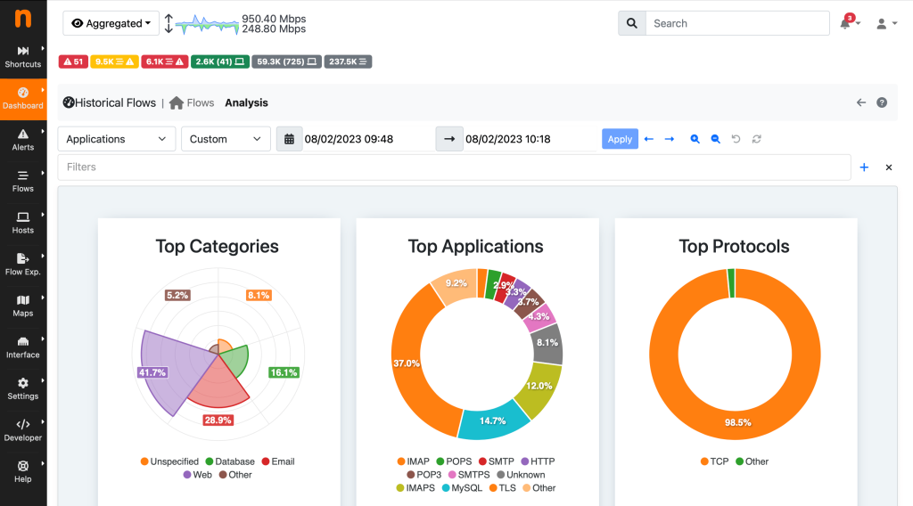 实时查看top talker和应用协议,并将其与日常活动进行比较