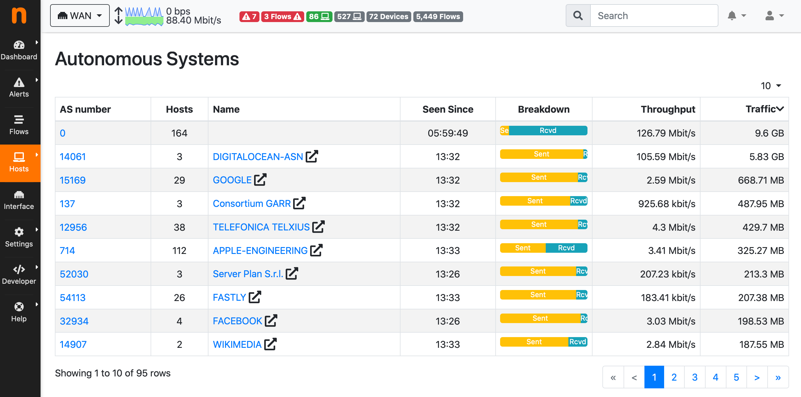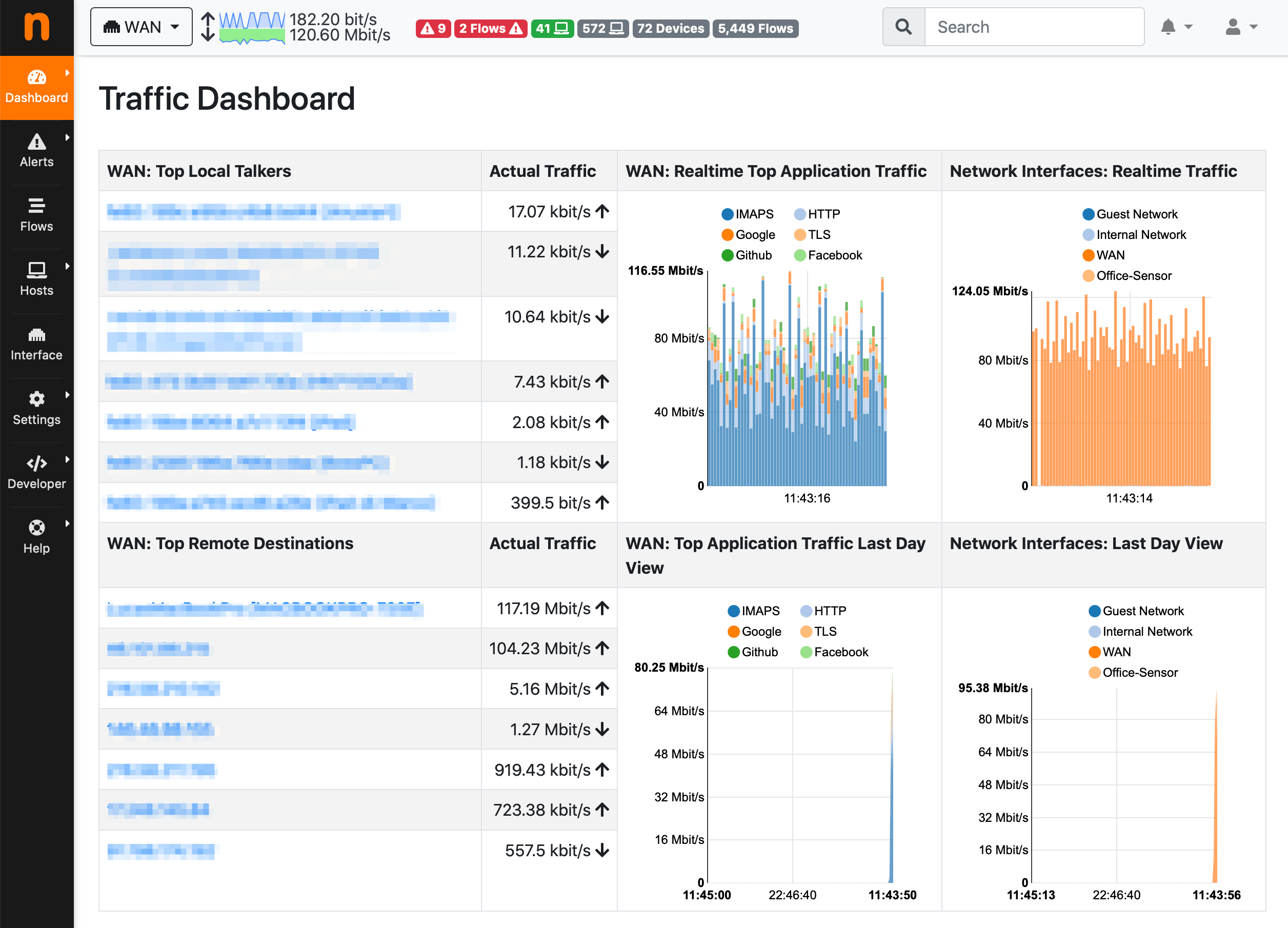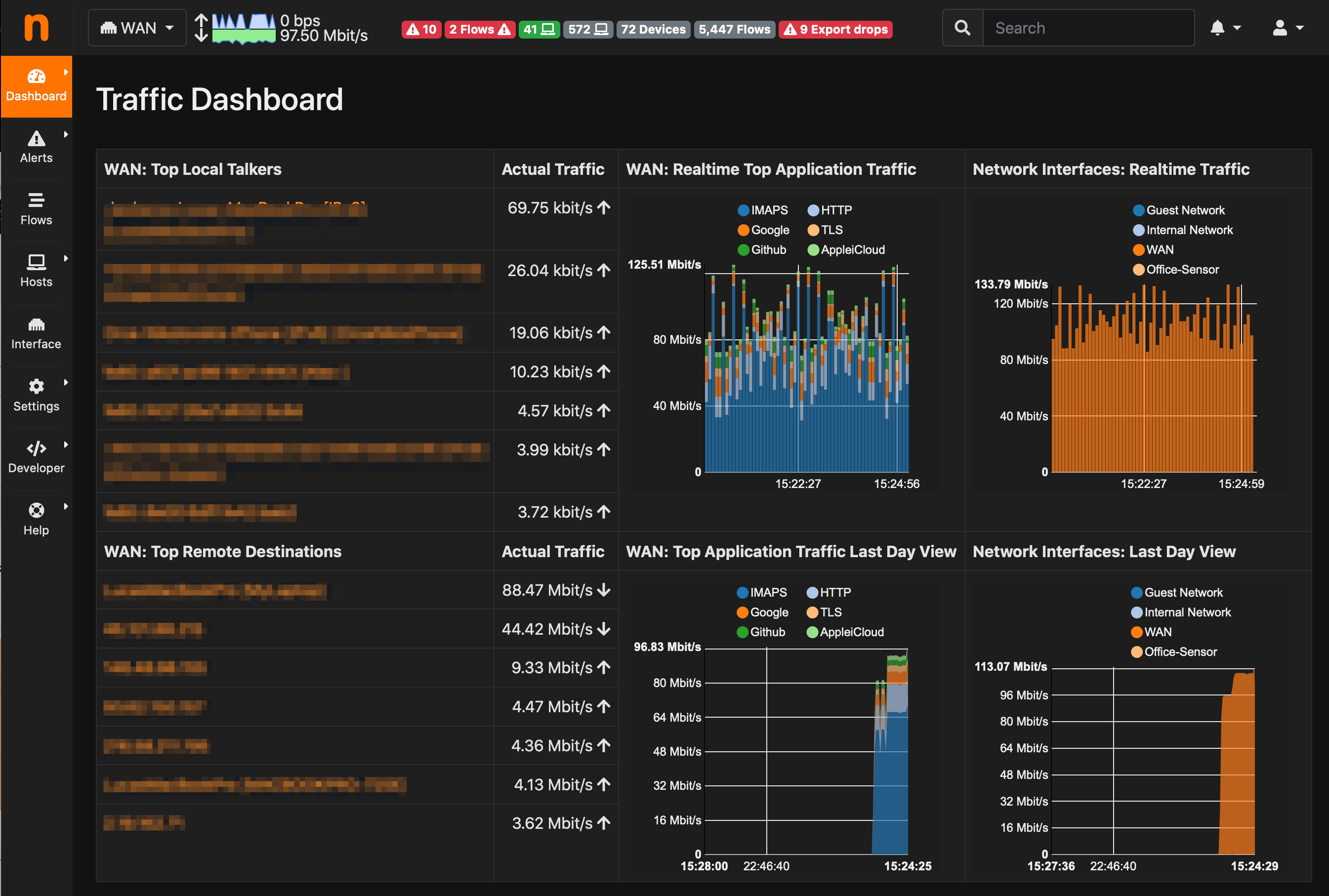 ntopng – 是的,都是小写字母 – 提供一个直观的、加密的网络用户界面,用于探索实时和历史流量信息。