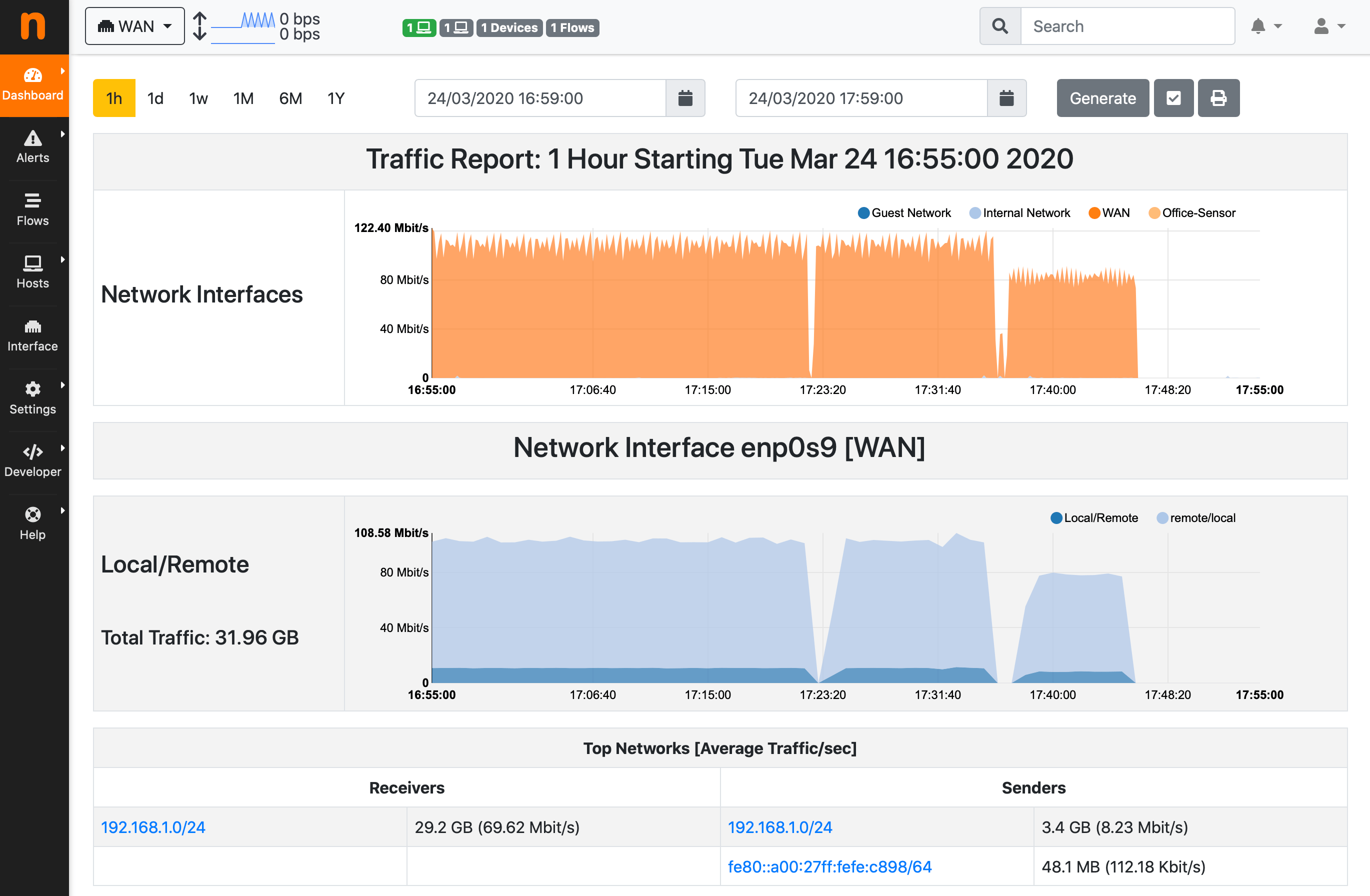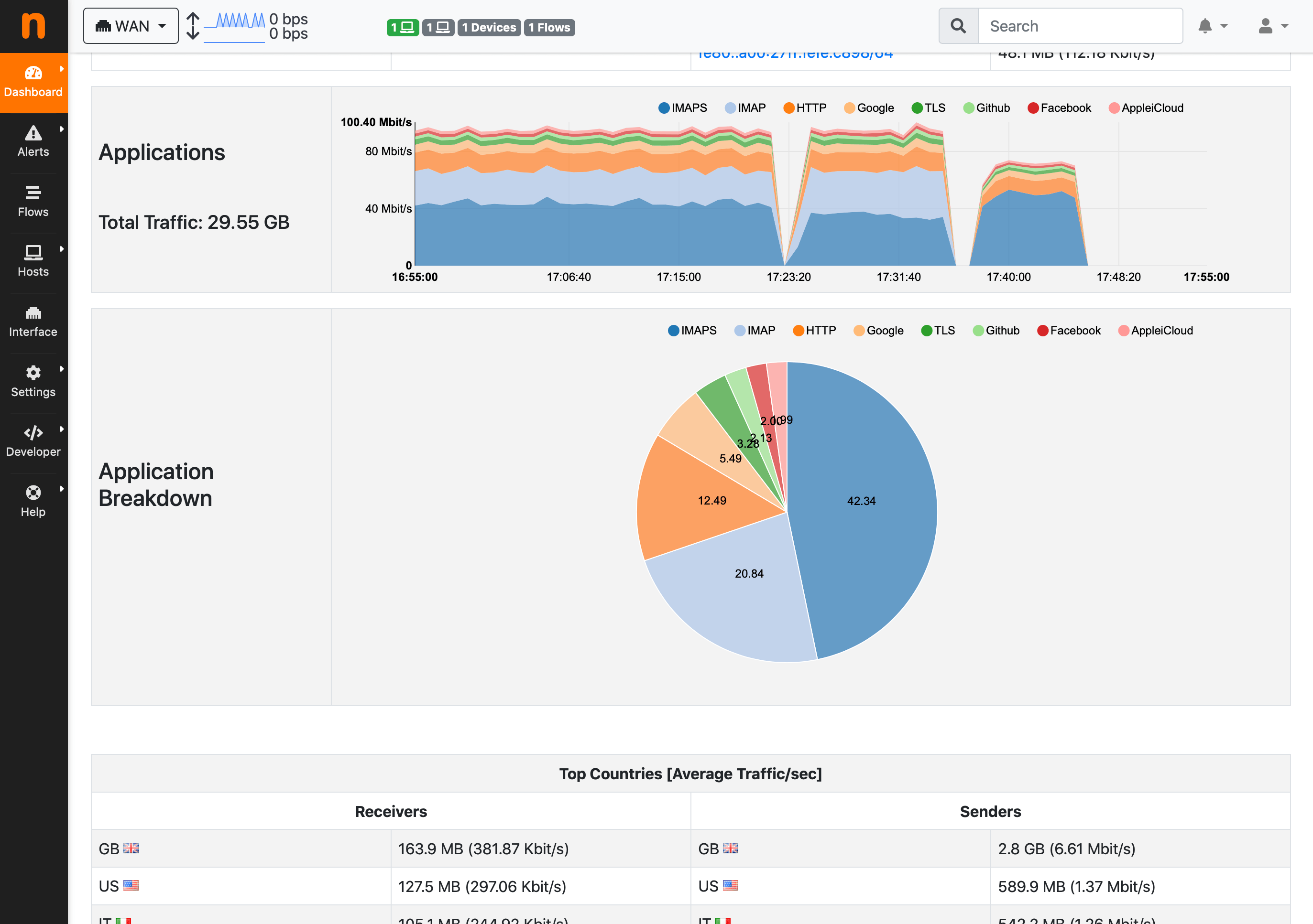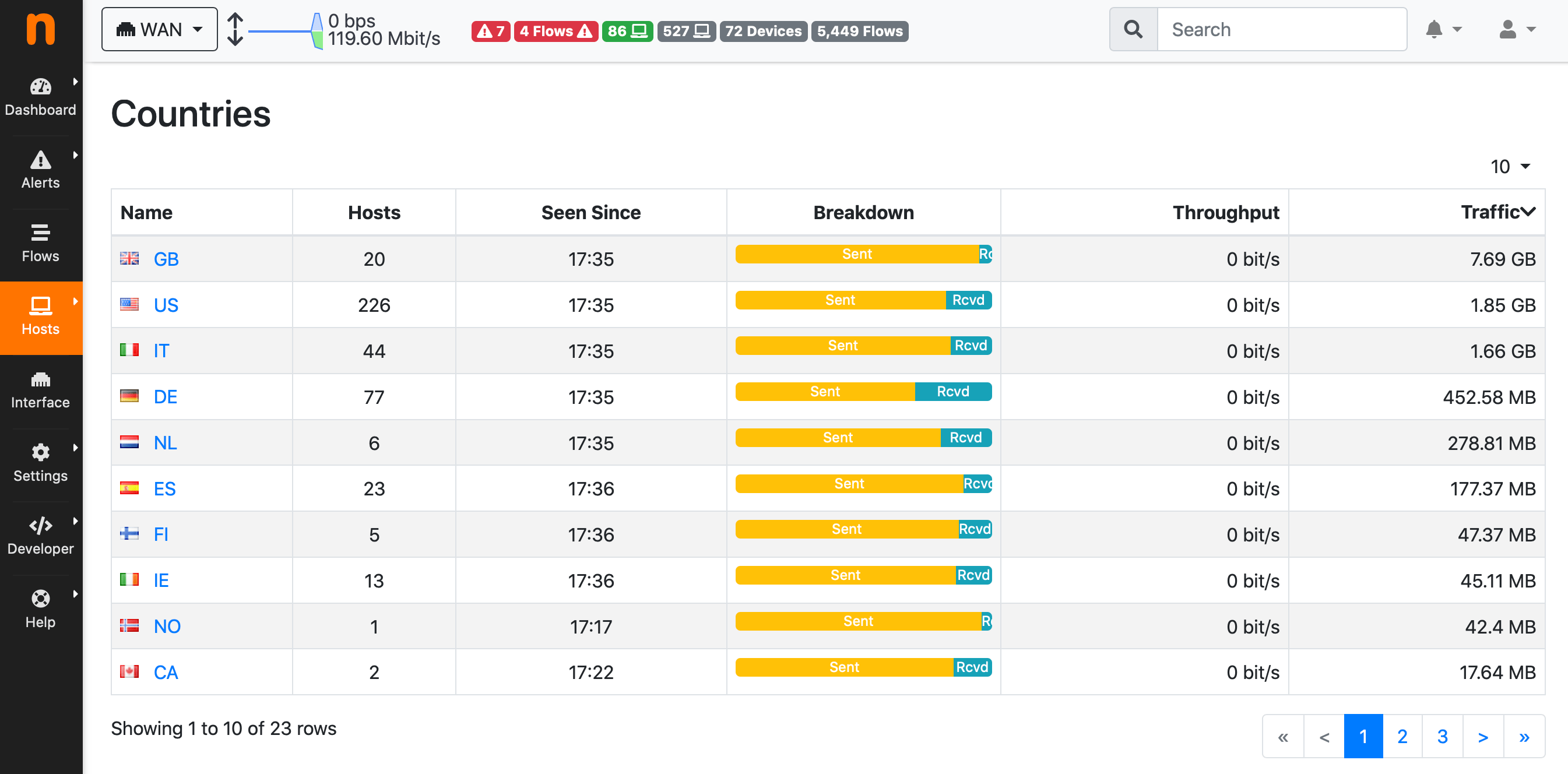 ntopng – 是的,都是小写字母 – 提供一个直观的、加密的网络用户界面,用于探索实时和历史流量信息。