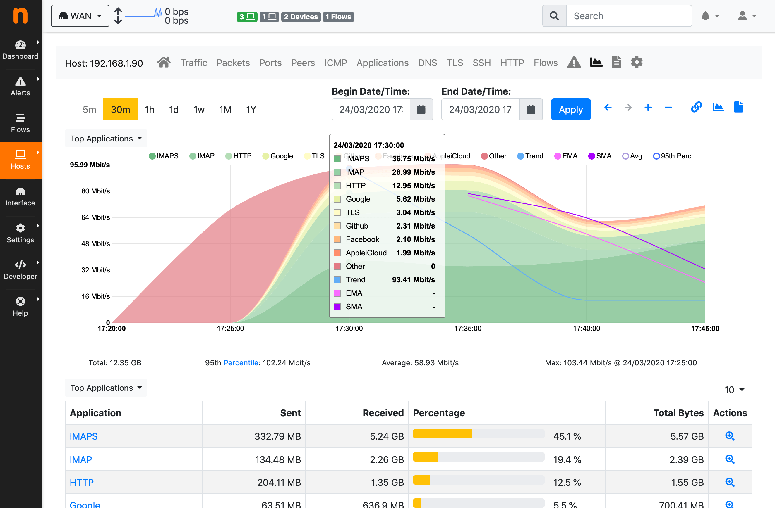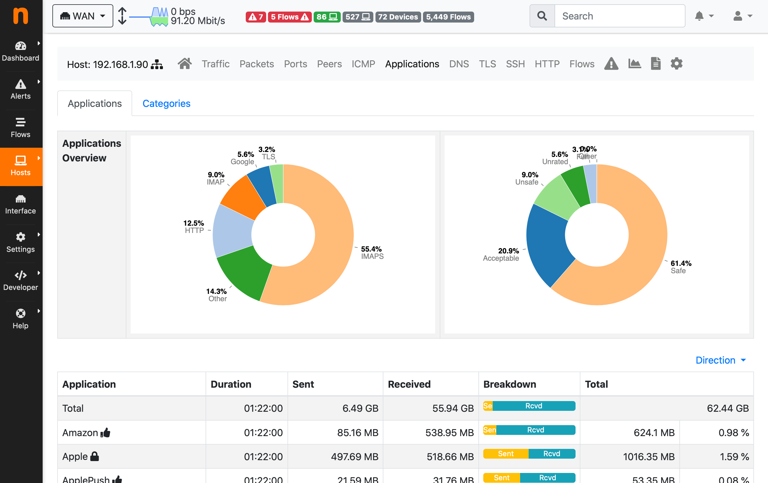 实时查看top talker和应用协议,并将其与日常活动进行比较