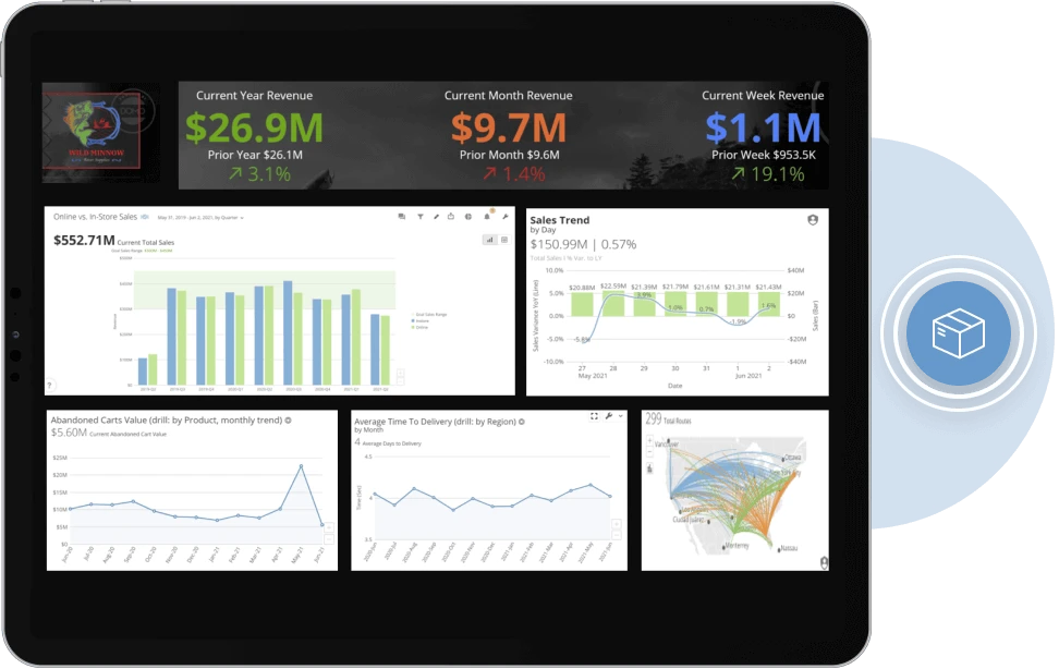 通过集成来自任何系统(包括库存管理、销售点、劳动力管理、ERP 和 CRM)的数千个数据源,获得跨客户、运营、财务、营销和销售的 360 度视图。