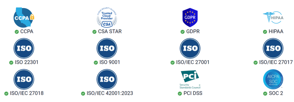 - 全面符合 SOC 2 Type II、GDPR 等国际合规标准
