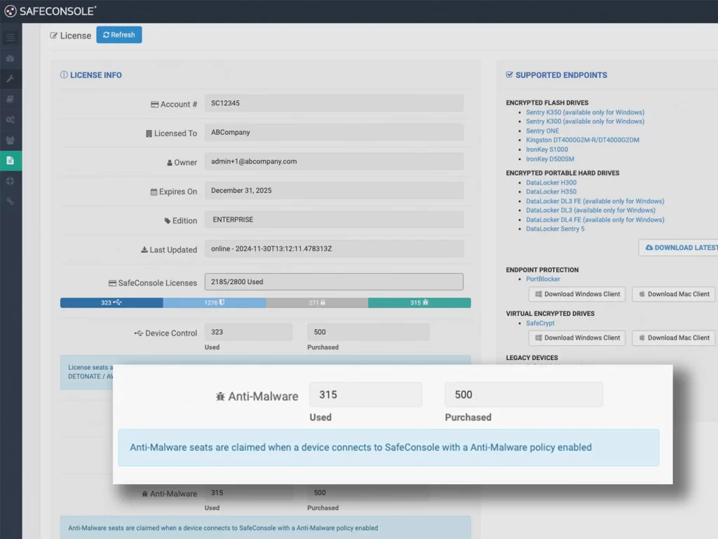 SafeConsole Anti-Malware通过Trellix™ Enterprise自动更新病毒定义,以确保您的USB驱动器免受最新恶意软件威胁。